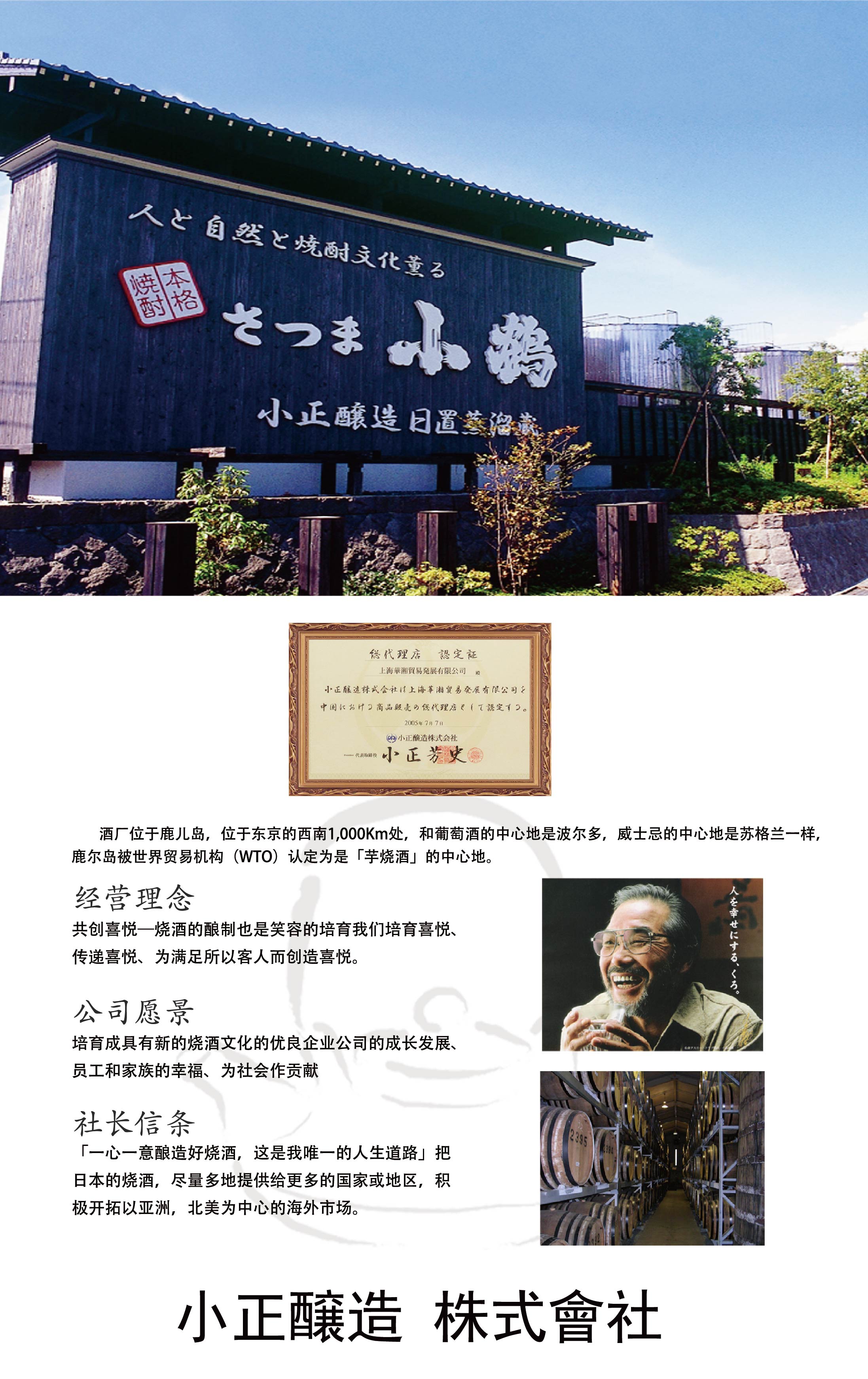 上海华湘贸易发展有限公司成立于 1998 年,目前取得中国总代理产品有:贺茂鹤清酒、天狗舞清酒、出羽樱清酒、黑龙清酒、玉乃光清酒、黄樱清酒、小正烧酒、壹岐烧酒、山字酱油、天与调味品。